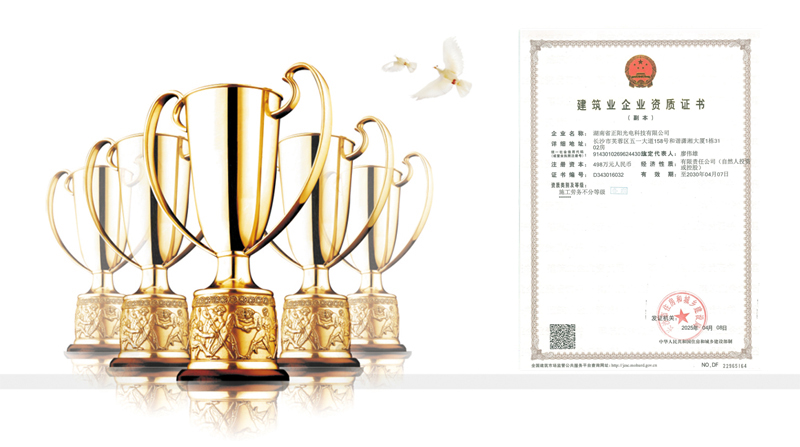 湖南省正陽光電科技有限公司是一家從事亮化工程及大型燈光藝術的設計、制作、安裝和維護于一體的專業(yè)化公司。公司資質齊全、管理嚴謹、技術先進、實力雄厚,取得了城市及道路照明工程專業(yè)承包壹級資質、照明工程設計專項甲級資質、機電工程施工總承包貳級資質、施工勞務等資質、國家高新技術企業(yè)、國家“重質量·守誠信”示范企業(yè)。
